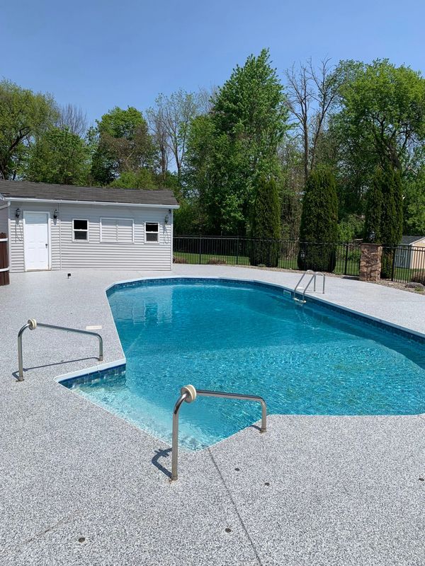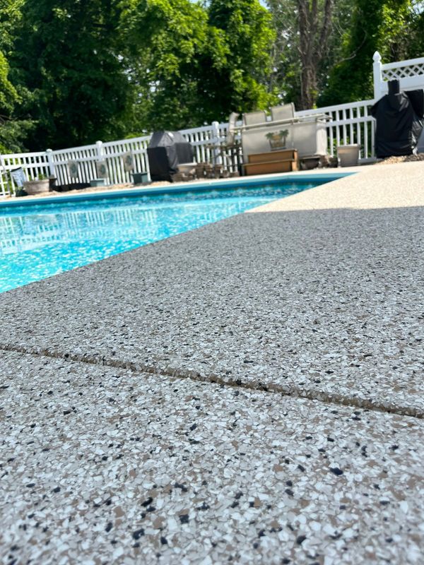 Upgrading your pool deck area is quick and easy with Upstate Concrete Coatings. Don't settle for your cracked concrete or failing epoxy, we use only time-tested and premium coating products to ensure your new floor will last for years to come. Your pool will benefit from our high-end product for the following reasons: